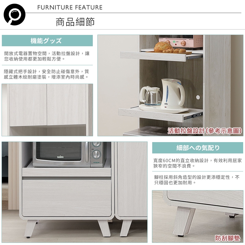 拉盤式設計,可放置烤箱、電鍋等電器,輕鬆使用各式家電!