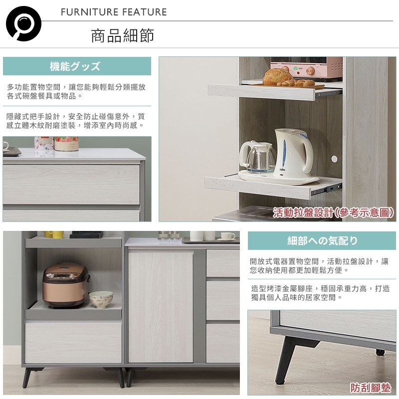 拉盤式設計,可放置烤箱、電鍋等電器,輕鬆使用各式家電!