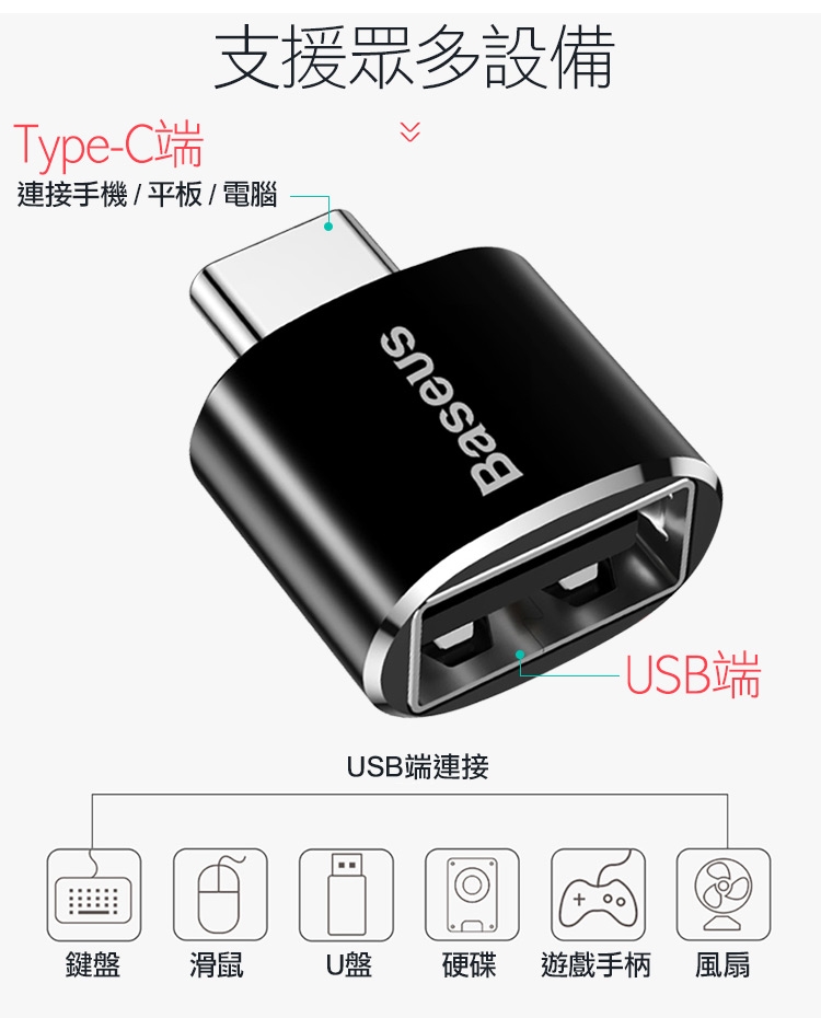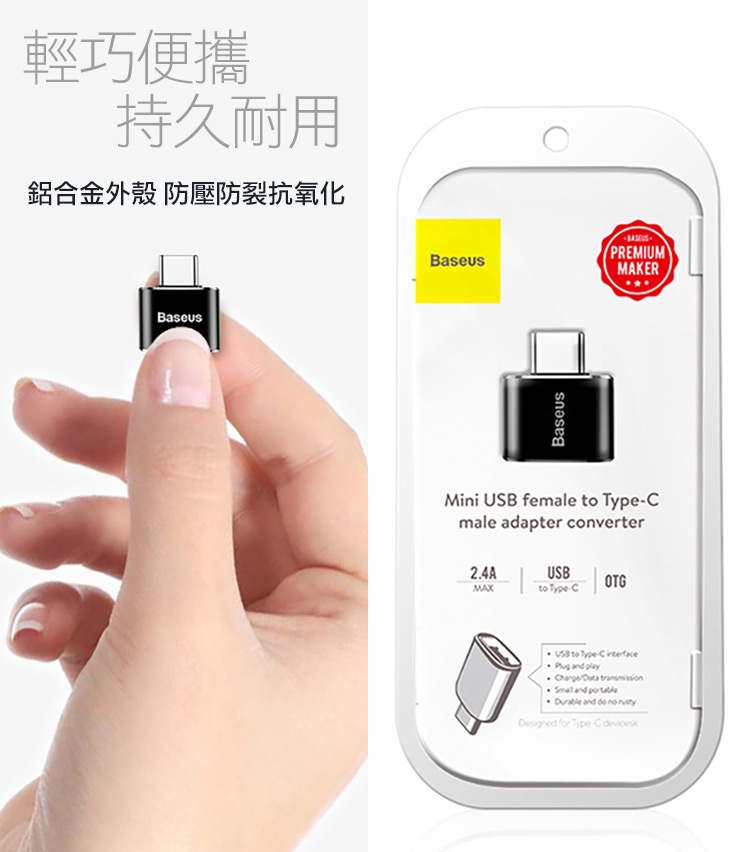 Baseus倍思 USB轉Type-C 迷你款轉換頭