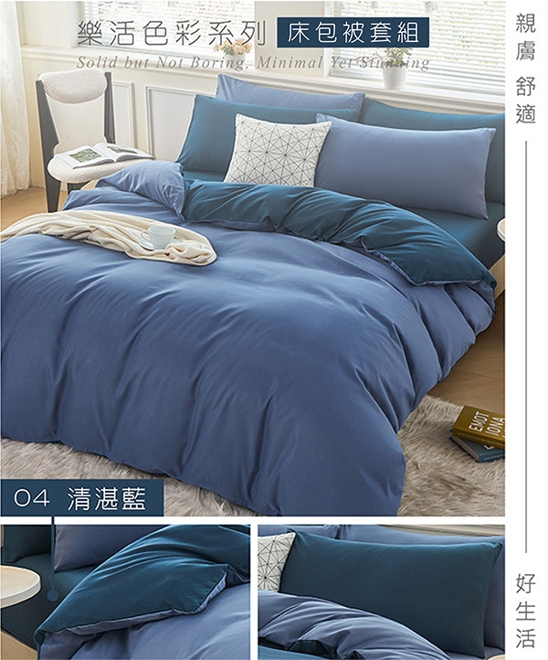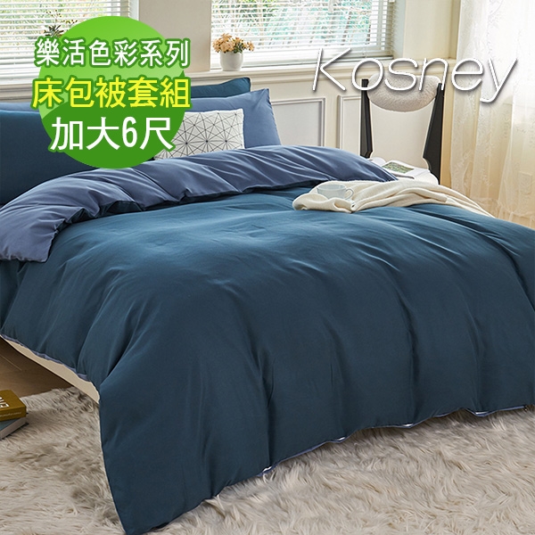 KOSNEY 清湛藍 頂級加大絲柔棉床包被套組床包高度35公分