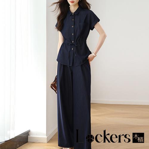 【Lockers 木櫃】減齡襯衫闊腿褲兩件套 L114082704