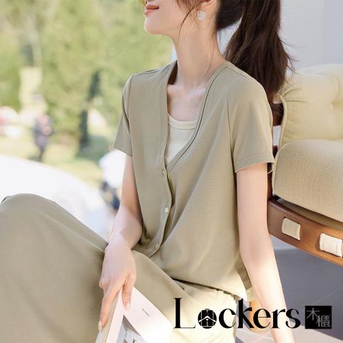 【Lockers 木櫃】撞色假兩件休閒套裝 L114082703