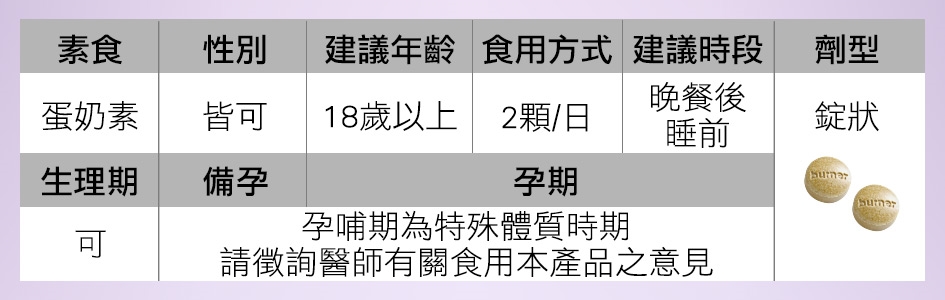 每天2粒於睡前食用,佐以250c.c.開水,多食無益