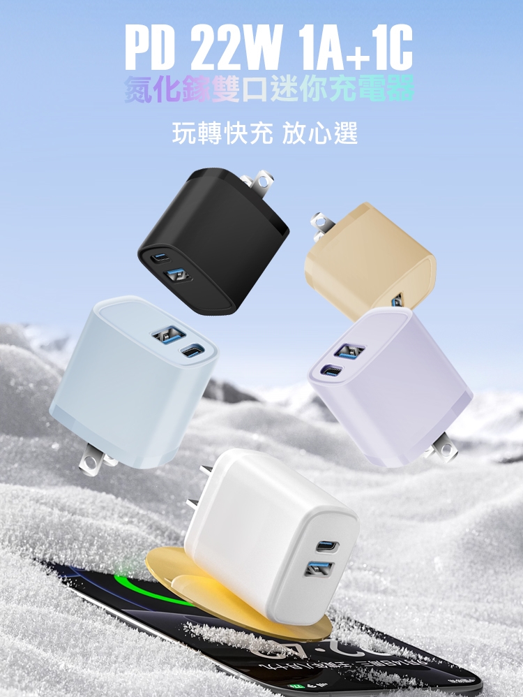 CITY BOSS for COT-804 雙孔氮化鎵迷你充電頭 GaN輕量氮化鎵 22W快充 PD+QC