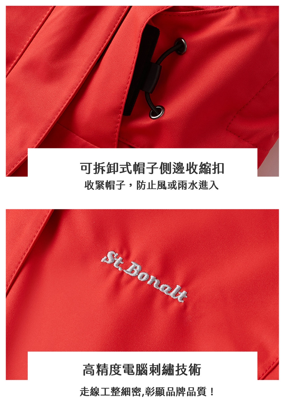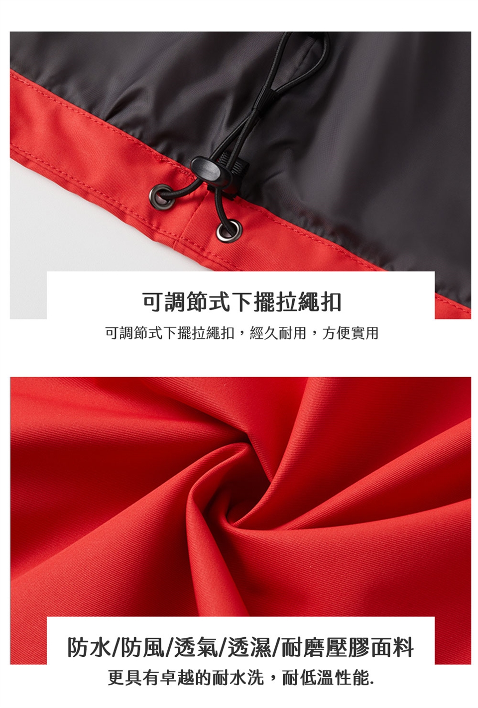 - 可調節式下擺拉繩扣,經久耐用,方便實用