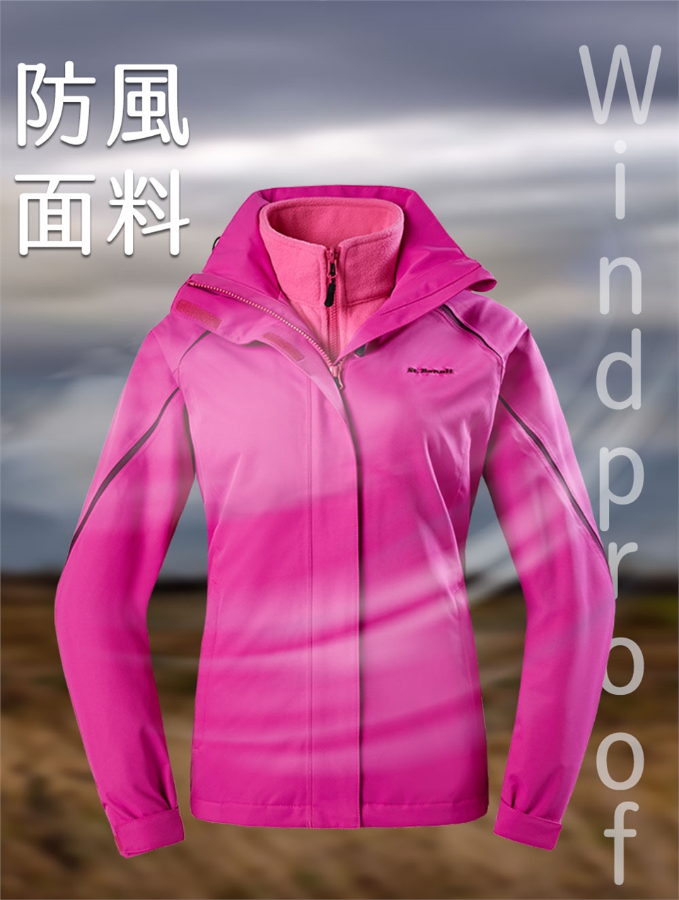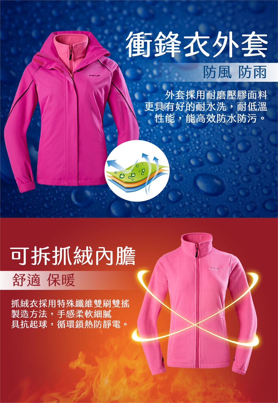 - 衣領防夾設計,防止拉鍊拉上時夾傷臉頰。