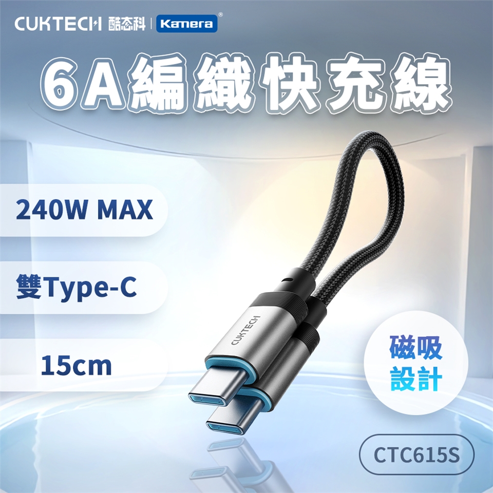 包裝內容:編織快充線 6A 黑色 (15CM)×1