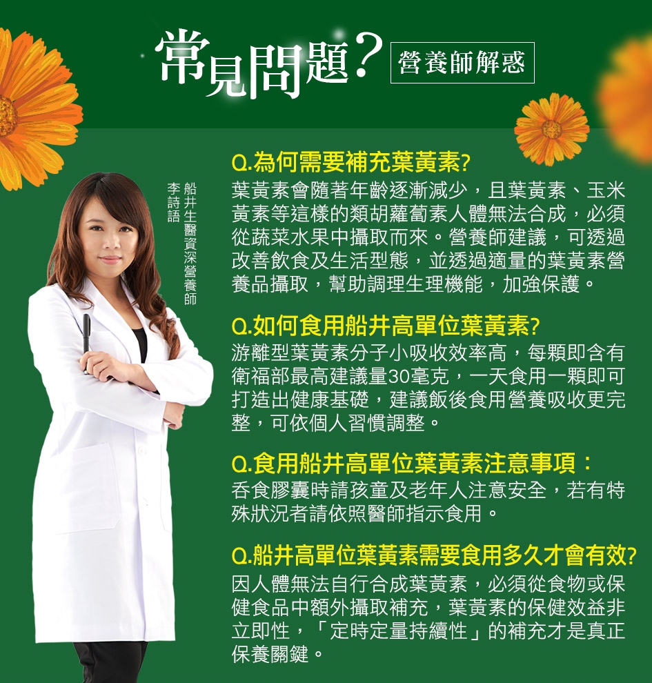 商品詳細介紹 體驗說明 不可體驗 使用方法說明 1日1顆,餐後食用,多食無益(每顆含30mg葉黃素)【衛生福利部公告,每日最高劑量葉黃素30mg】 注意事項 孕婦、12歲以下孩童及特殊病症者,請依醫生指示食用。