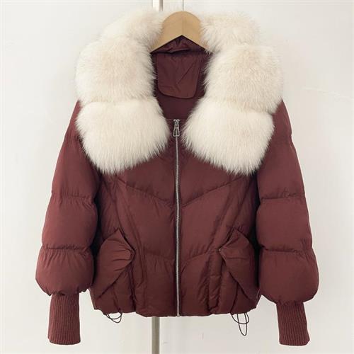 【巴黎精品】現貨+預購頂級狐狸毛領真羽絨外套白鴨絨外套羽絨衣秋冬大碼休閒女裝-針織袖女外套10色a1ld82