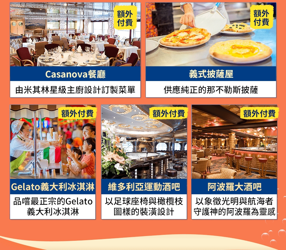 ※ 為落實防疫衛教,本行程各項設施或服務可能異動,請依歌詩達-莎倫娜號公告或日報為準。