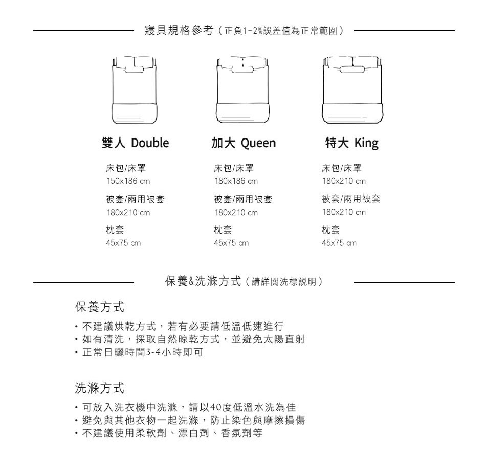 ◎建議清洗時,先將洗劑溶解於水中,再將床寢放入大型洗衣袋後再清洗