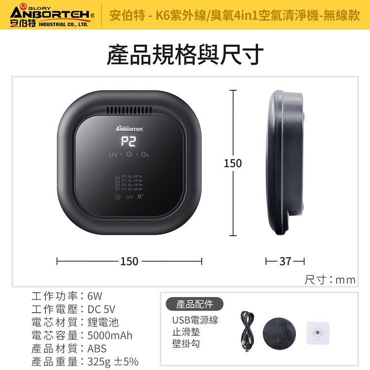 商品品名:【安伯特】K6紫外線臭氧4 in 1空氣清淨機-無線款