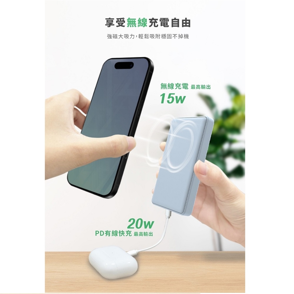 • 磁吸無線充電,完美吸附手機背面,充電不打滑、不掉線,隨用隨貼。