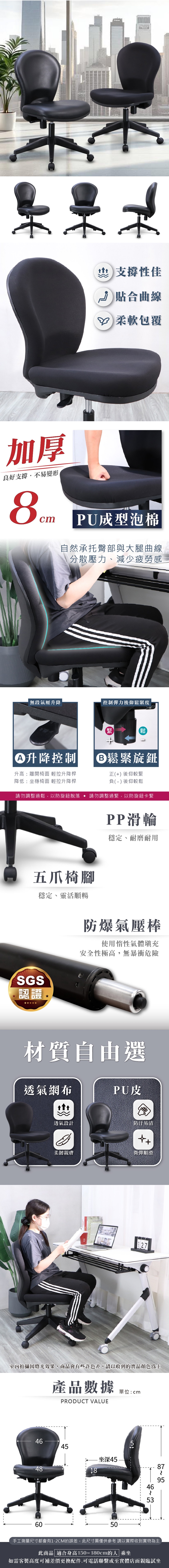 椅背材質:皮面 or 布面 + PU成型泡棉