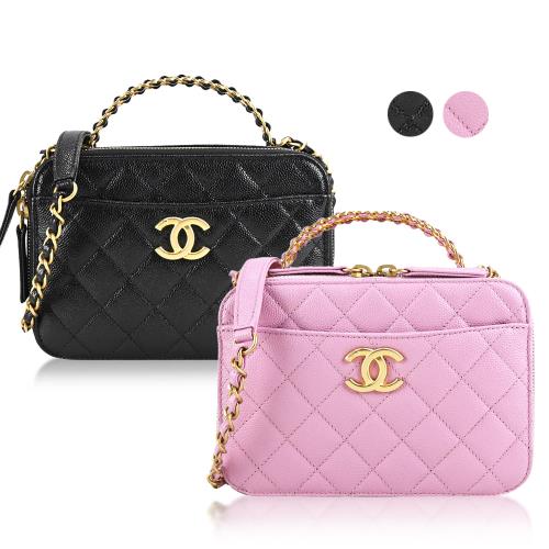 CHANEL 經典LOGO菱格紋牛皮鏈帶化妝/斜背包(多色選)