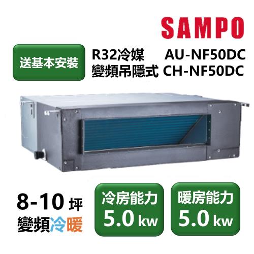 【家電速配 SAMPO聲寶】NF系列時尚變頻吊隱式 8-10坪 4D大方吹七大金級防鏽冷暖分離式冷氣(CH-NF50DC/AU-NF50DC)