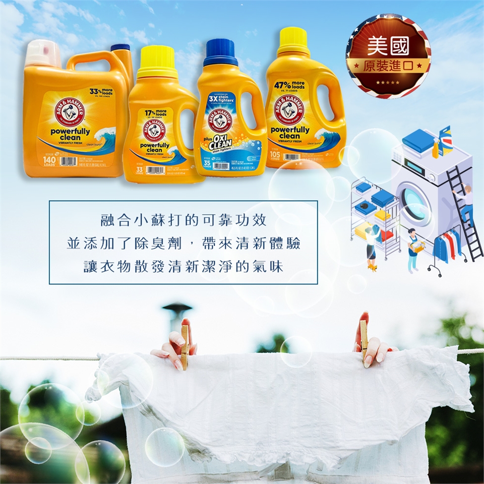 ●採用美國排名第一的去污添加劑品牌 OxiClean*,強力去除污垢和異味
