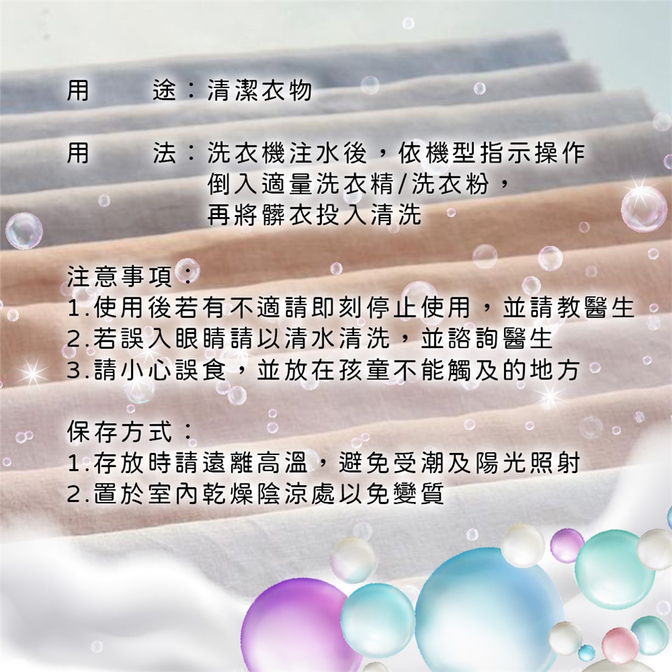 ●五合一強力洗衣液,即去污、深層清潔、增白、亮澤和持久清新於一瓶
