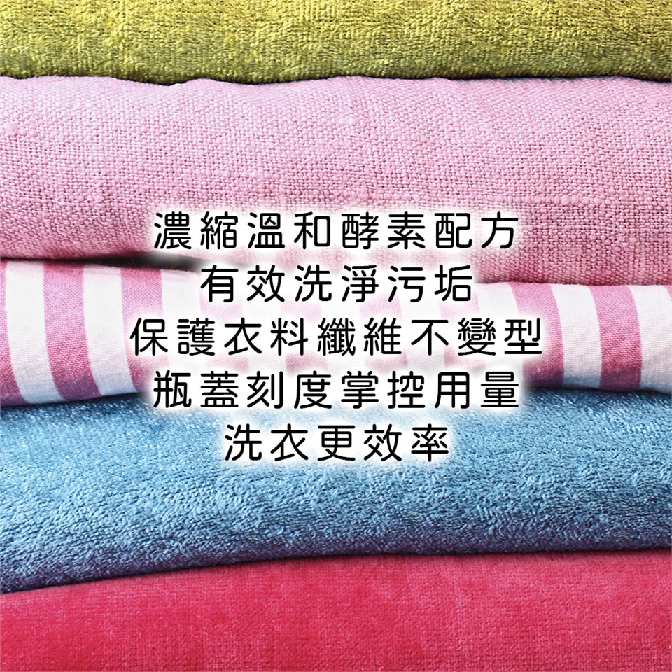 超濃縮溫和酵素配方,he高效能、滾筒、直立洗衣機皆適用。