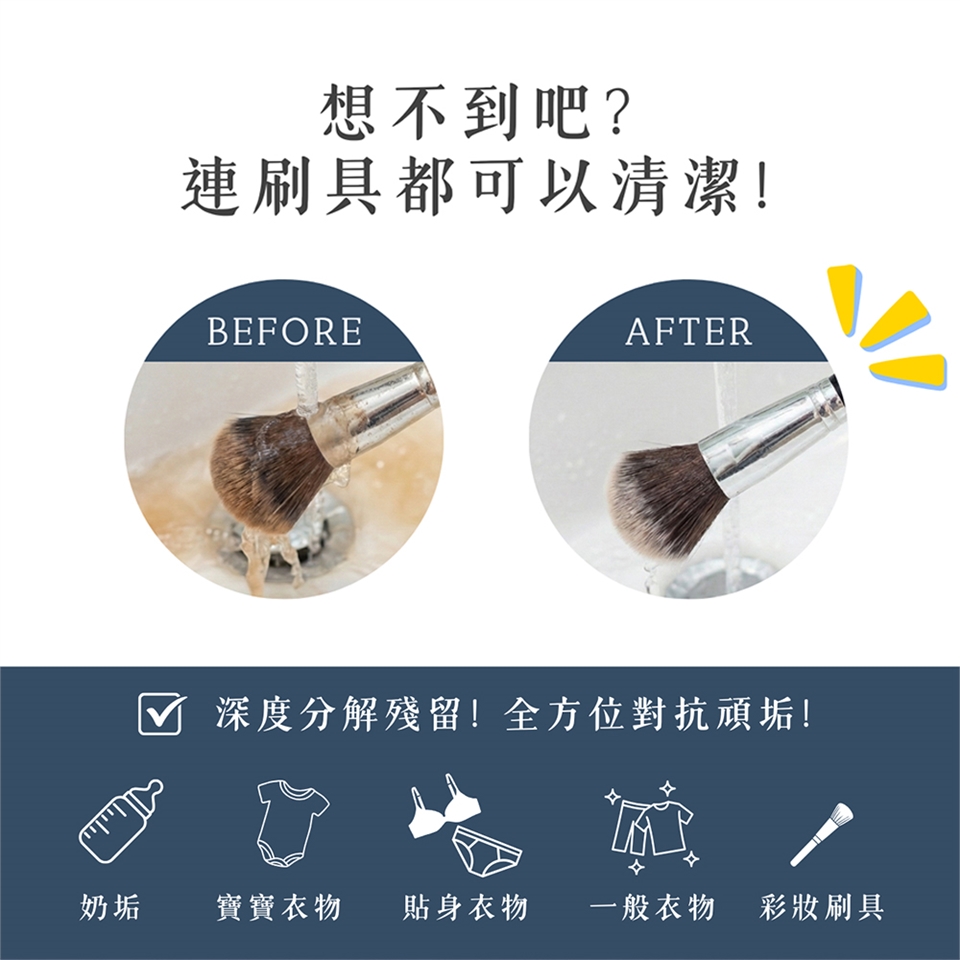 使用時,擠壓約2~3下手洗露攪拌均勻,依需求增減,將欲清潔衣物浸泡在內,水量需蓋過衣物,簡單搓揉後浸泡約15分鐘,讓酵素發揮作用後,可再針對較髒汙的部分搓洗,再用清水將其沖洗乾淨,即可擰乾或脫水晾掛。