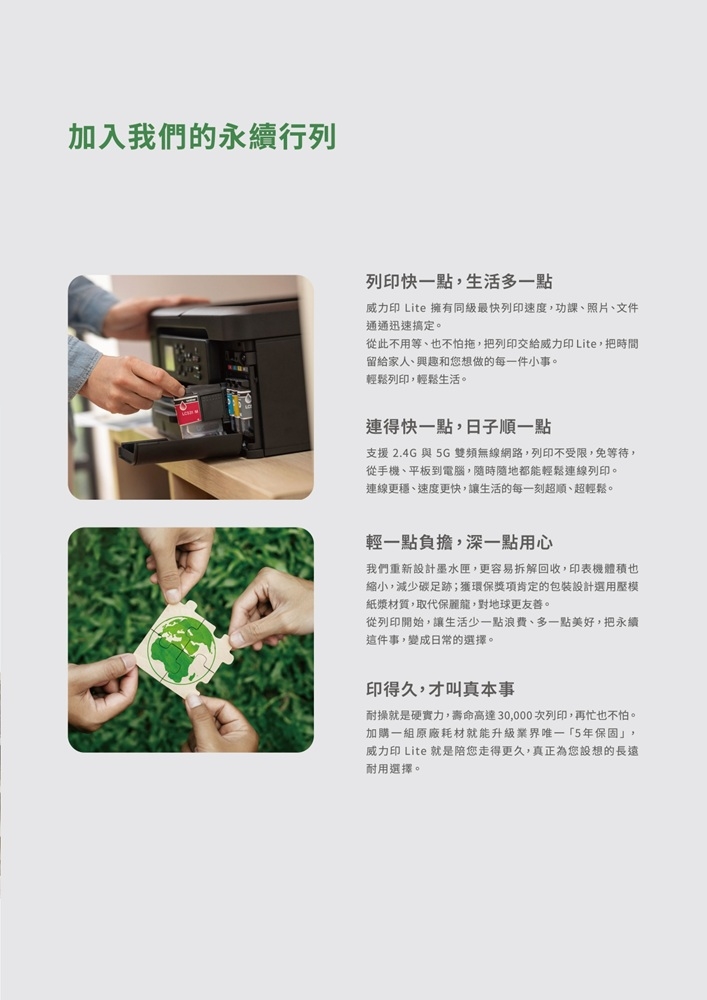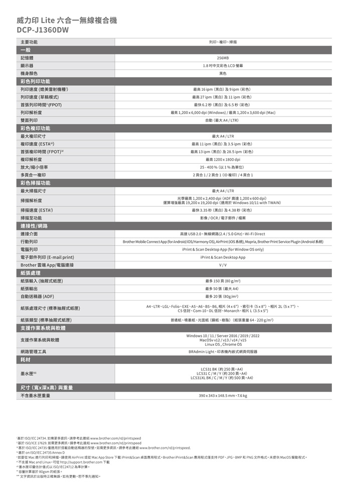 Wi-Fi, Airprint, Mopria, Wi-Fi Direct, 2.4/5G 雙頻無線網路, USB 2.0