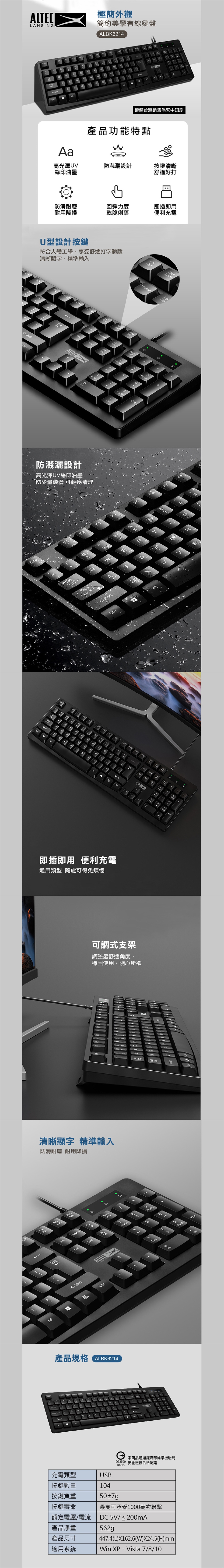ALTEC LANSING 簡約美學有線鍵盤 ALBK6214 黑