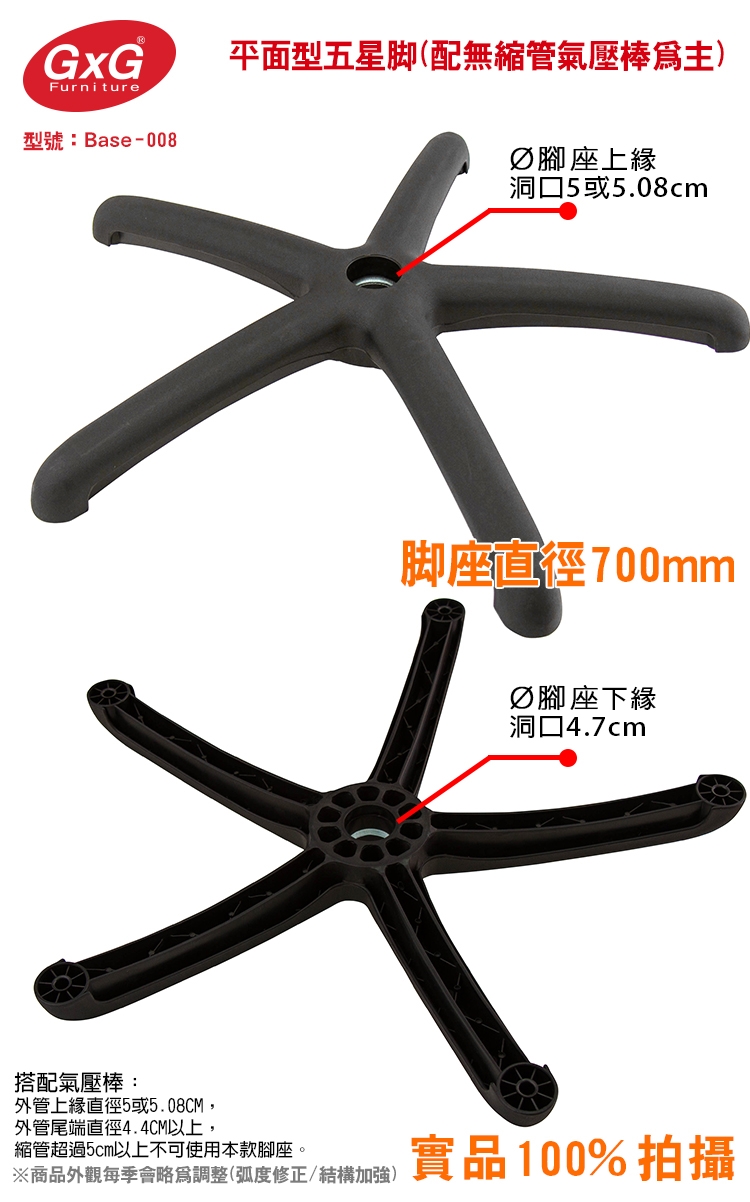 ※補充:部分工廠的腳座孔徑、或氣壓棒粗細,不一定都能通用,如有疑慮,可先拍照給客服確認,避免規格買錯無法正常使用!