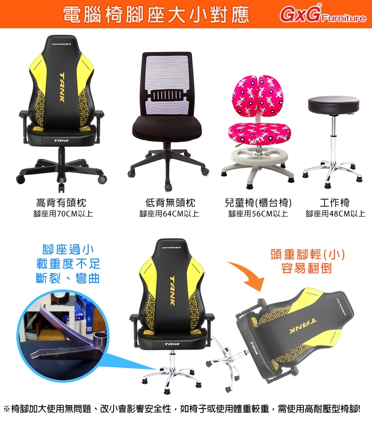 ※椅腳加大使用無問題、改小會影響安全性,如椅子或使用體重較重,需使用高耐壓型椅腳!