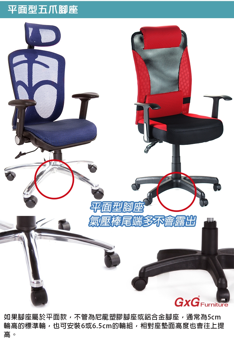電腦椅腳座有分【平面型腳座】、【高腳(山型)腳座】