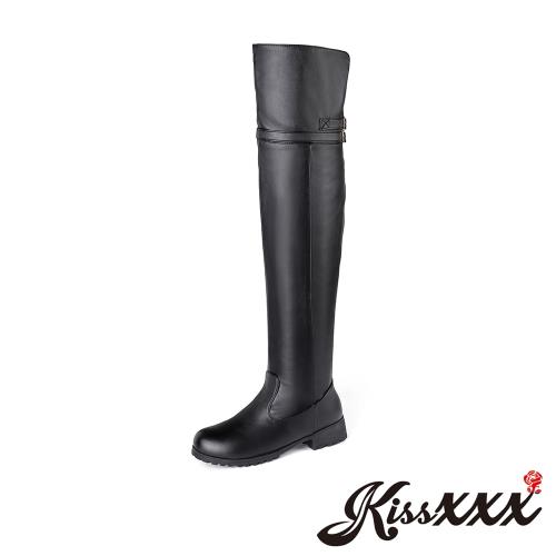 【Kissxxx】皮帶釦粗跟過膝長靴/帥氣皮帶釦飾造型時尚粗跟過膝長靴 女鞋 黑