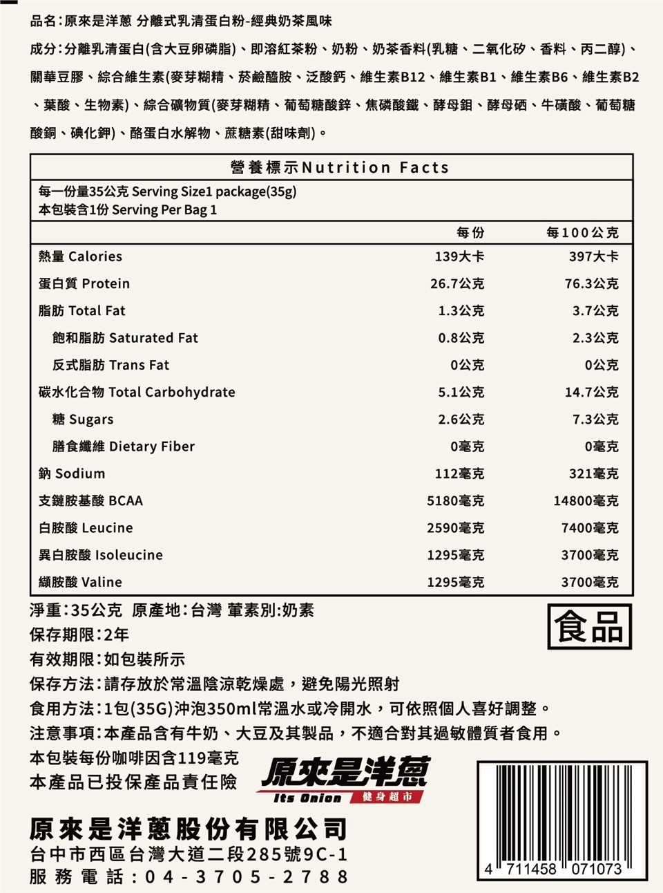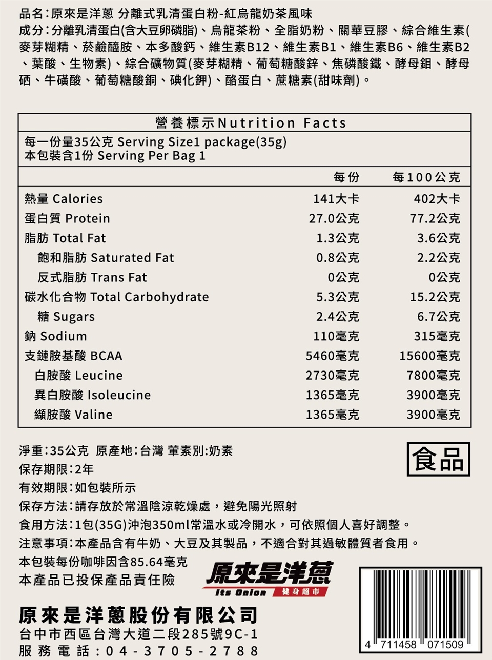 ※過敏原資訊:本產品含有牛奶、大豆及其製品,不適合對其過敏體質者食用