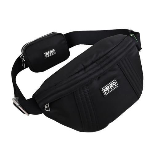 KENZO 2SA717 立體LOGO尼龍附零錢袋斜背胸口包/腰包.黑
