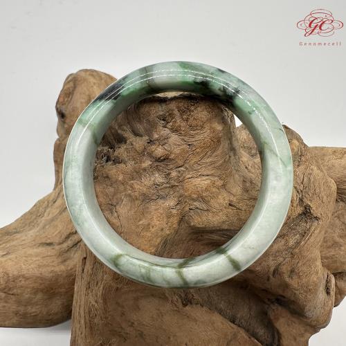 【肌容雪】天然美石綠飄花平安鐲 編號B239(鐲圍57.9mm #18號)
