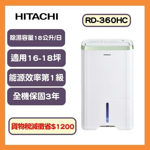 快速出貨↗HITACHI日立 一級能效18公升清淨除濕機 RD-360HC-庫
