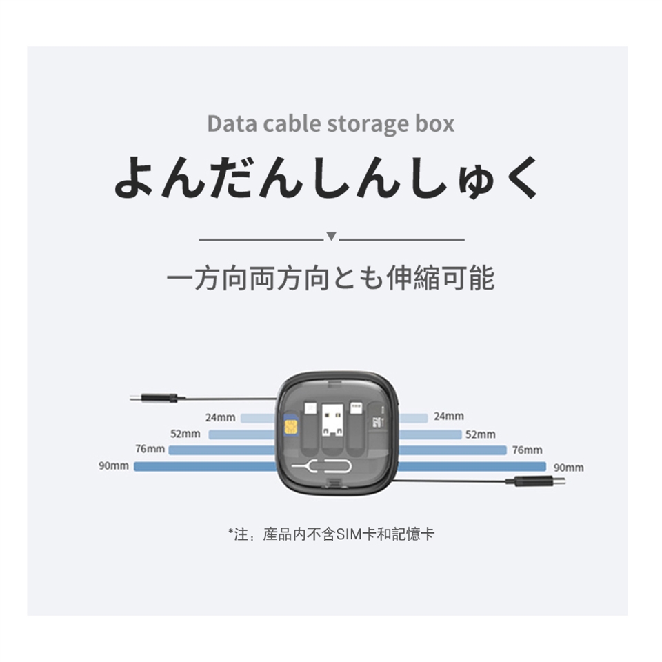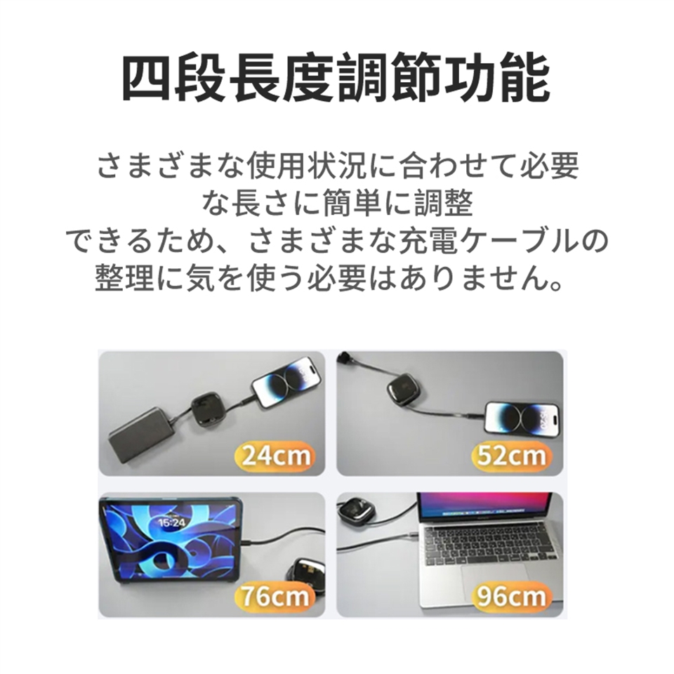 ✅ 四段伸縮充電線:24cm / 52cm / 76cm / 96cm 隨需調整