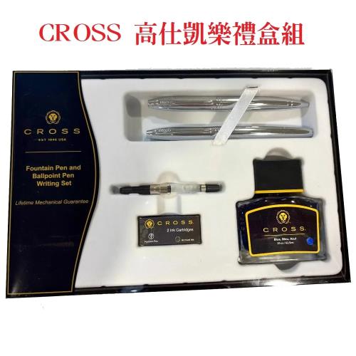 CROSS 高仕 凱樂系列 亮鉻白夾 鋼筆+原子筆+墨水禮盒組