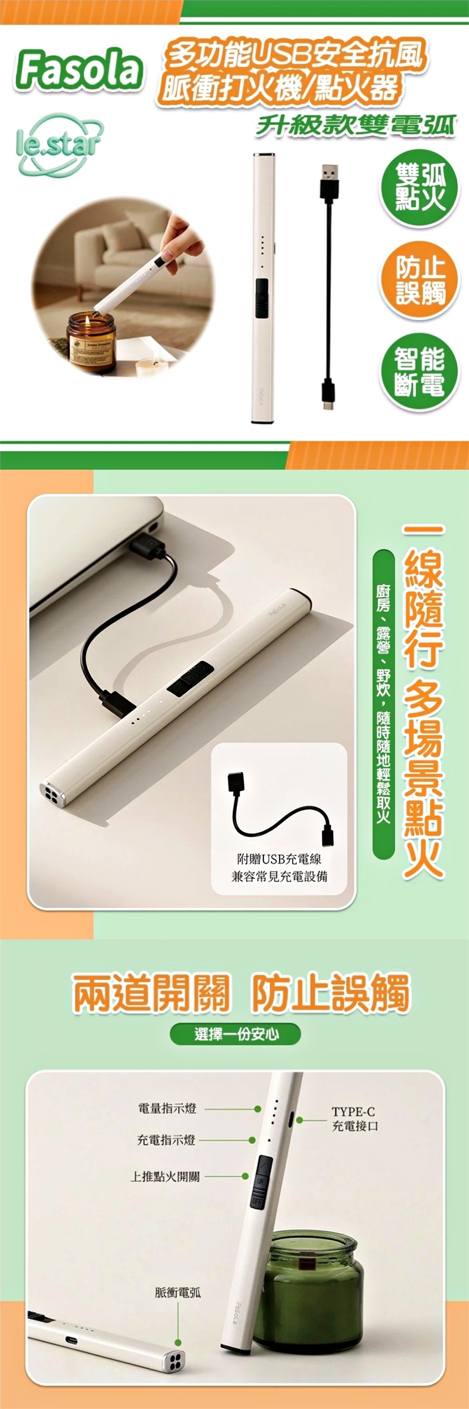 品名:升級款雙電弧-多功能USB安全抗風脈衝打火機/點火器