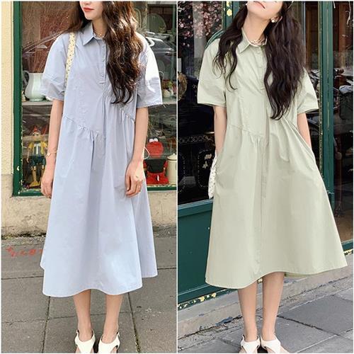 【巴黎精品】現貨+預購 高級法式長洋裝中長裙洋裝連身裙子A字裙大碼寬鬆休閒女裝-短袖襯衫裙子2色a1ku29