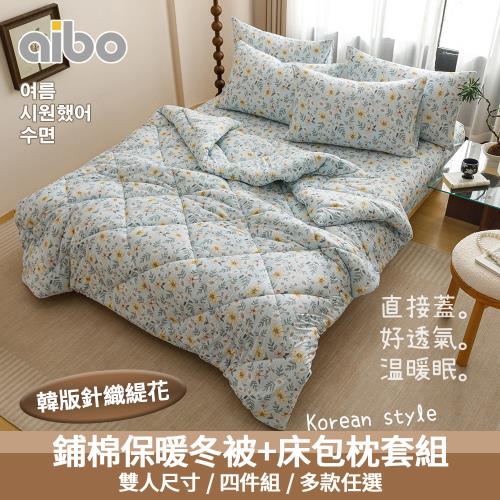 【Aibo】韓版針織緹花床包冬被四件組(雙人5x6.2呎/針織緹花/冬被/床包/枕套/韓系風格)