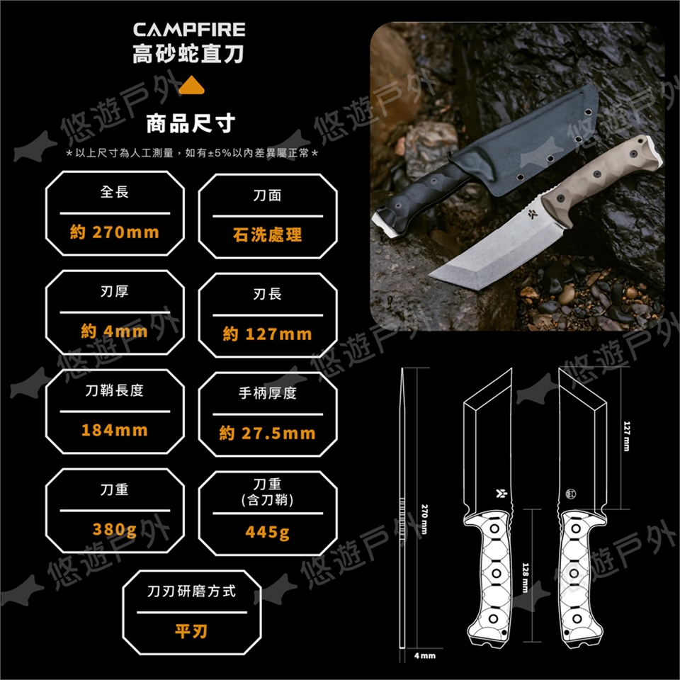 品名:CAMPFIRE 高砂蛇直刀-極黑/沙漠/鈦灰