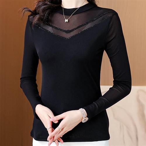【巴黎精品】現貨+預購高級蕾絲上衣短袖雪紡衫網紗拼接氣質打底衫內搭休閒女裝-燙鑽洋氣百搭女上衣a1kw55