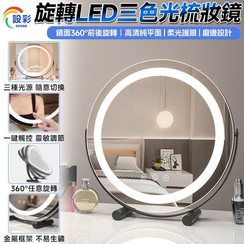 【Secaii設彩品牌店】梳妝鏡 化妝鏡 可旋轉LED三色調光 補光鏡 美妝鏡 立鏡 梳妝鏡(三色變色/防藍光護眼)