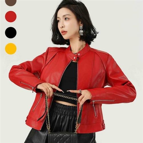 WB25541設計師款洋氣設計感立領時尚女皮衣PU短皮衣外套