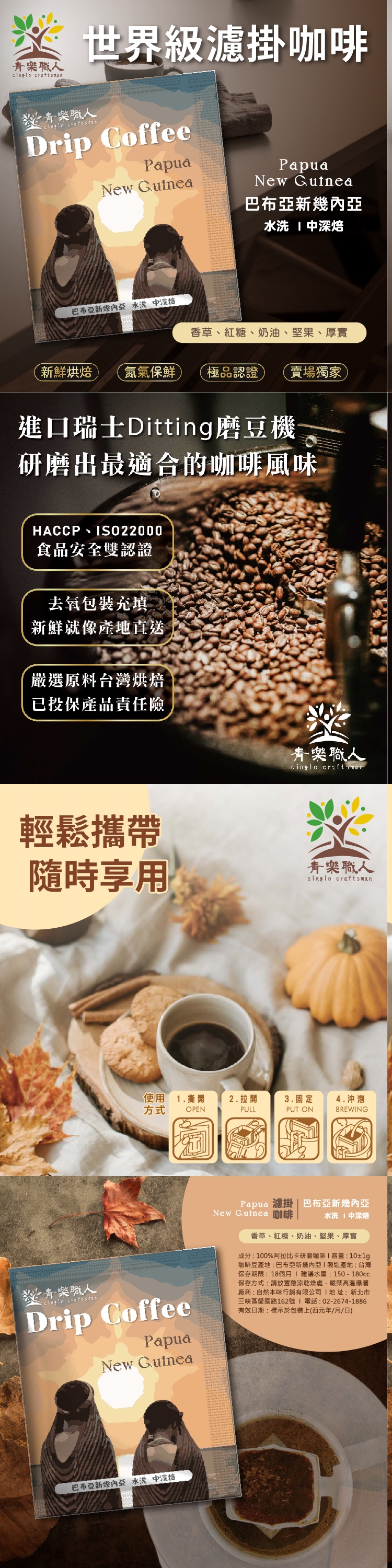 嚴選來自 巴布亞新幾內亞高海拔產區 的阿拉比卡咖啡豆,【青樂職人】以專業職人中深焙工藝。