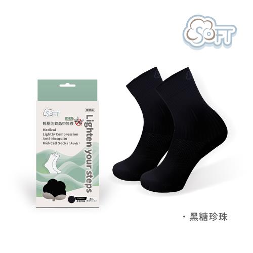SOFT 醫療級 輕壓柔軟舒適防蚊襪 中筒襪 止滑運動襪 成人款 黑糖珍珠 1雙