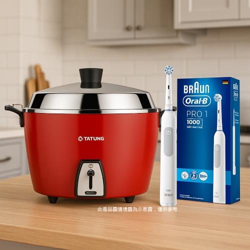 大同 15人份不鏽鋼配件電鍋TAC-15L-NCRE(富貴紅)+牙科指定Oral-B德國製造電動牙刷