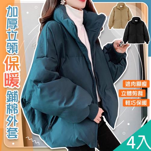 QIDINA 4入-加厚鋪棉時尚輕薄保暖外套-G / 羽絨外套 連帽外套 厚外套 大尺碼外套 女外套