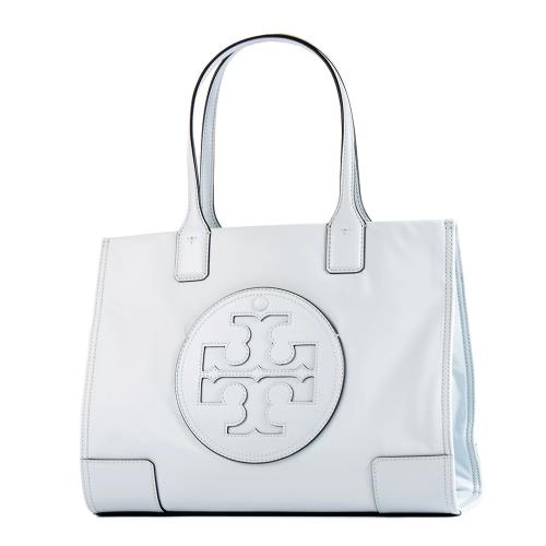 TORY BURCH 專櫃款 ELLA 皮革標尼龍磁吸釦托特包-淡灰藍/小