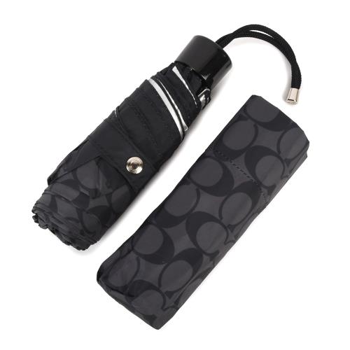 【COACH】滿版LOGO抗UV折疊傘-黑灰色