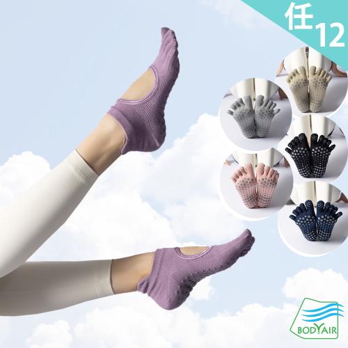 (12入組)【BODYAIR嚴選】露背一體成形五指防滑瑜珈襪(透氣.舞蹈.運動.運動襪)